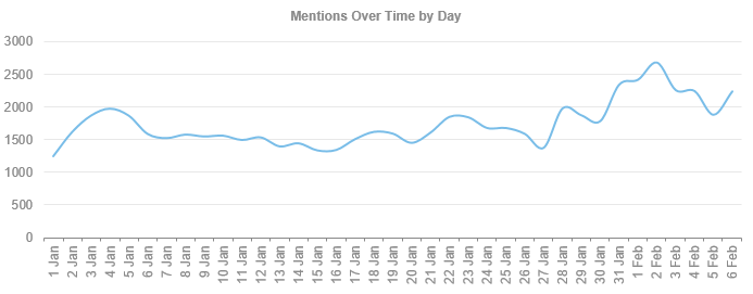 Al realizar un estudio de Social Listening en el sector de “Alimentos y Bebidas” en el primer mes del año, pudimos darnos cuenta que las menciones mantienen un volumen similar, teniendo picos importantes antes y durante el 2 de febrero, Día de la Candelaria en México donde la conversación relativa a los “Tamales” ayudó a aumentar la conversación.