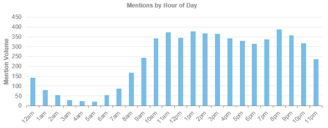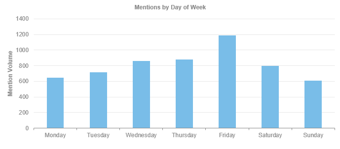 Otra de las ventajas de contar con herramientas de Social Listening es la posibilidad de saber cuáles son los días y horarios en los que aumenta la conversación de nuestra audiencia.