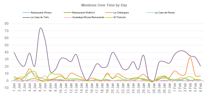 Aunque hay miles de restaurantes tan sólo en el sector de la “Comida Mexicana”, la audiencia podría ayudarte a mejorar tu estrategia de marketing, dándole una mayor proyección a las áreas donde no estás destacando y que se abren como oportunidades interesantes o, definitivamente, a replantearte lo que debes hacer en otras donde existen quejas.